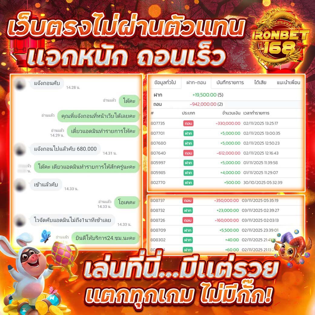 IIRONBET168X.CO เว็บไซต์เดิมพันที่ดีที่สุด เราพร้อมให้บริการลูกค้านักเสี่ยงโชคทุกท่านด้วยเทคโนโลยีระบบที่ล้ำสมัยที่สุด ระบบฝากถอนออโต้รวดเร็วทันใจ ใช้เวลาไม่เกิน 3 วินาทีเท่านั้น ไม่มีปัญหา การเงินมั่นคงที่สุดจะถอนหลักแสนหลักล้าน ไม่ต้องรอ เราถอนให้ทันที เล่นเดิมพันกับเรามั่นใจได้ 100% ด้วยทุนสูงสุดจากคาสิโน เราเป็นศูนย์รวม เกมส์เดิมพันมากกว่า 53 ค่ายดังให้ท่านได้เลือกเล่นเลือกเดิมพัน เลือกเสี่ยงโชคครบทุกรูปแบบไม่ว่าจะเป็น บาคาร่า เสือมังกร รูเล็ต แบล็คแจ็ค สล็อต ยิงปลา บอล มวย และอื่นๆอีกมากมายให้ เลือกเดิมพันกันอย่างจุใจ และอีกทั้งยังมีโปรโมชั่นเด็ดๆให้เลือกรับอีกเพียบ ไม่ว่าจะเป็นโปรโมชั่นสำหรับสมาชิกใหม่ โบนัสฝากแรก ลุ้นรับทองคำเครดิตฟรีทุกเดือน โปรโมชั่นแนะนำเพื่อนมาเล่นกับเรา รับค่าคอมสูงถึง 10% กันเลยทีเดียว