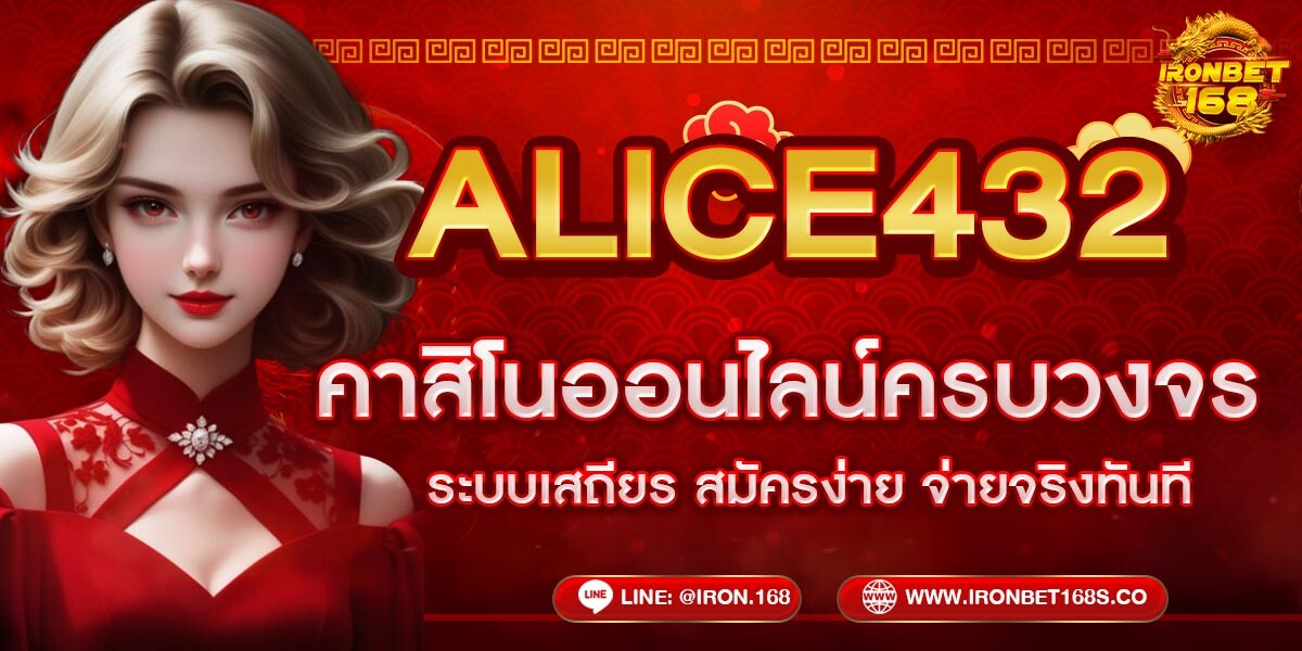 ALICE432 คาสิโนออนไลน์ครบวงจร ระบบเสถียร สมัครง่าย จ่ายจริงทันที